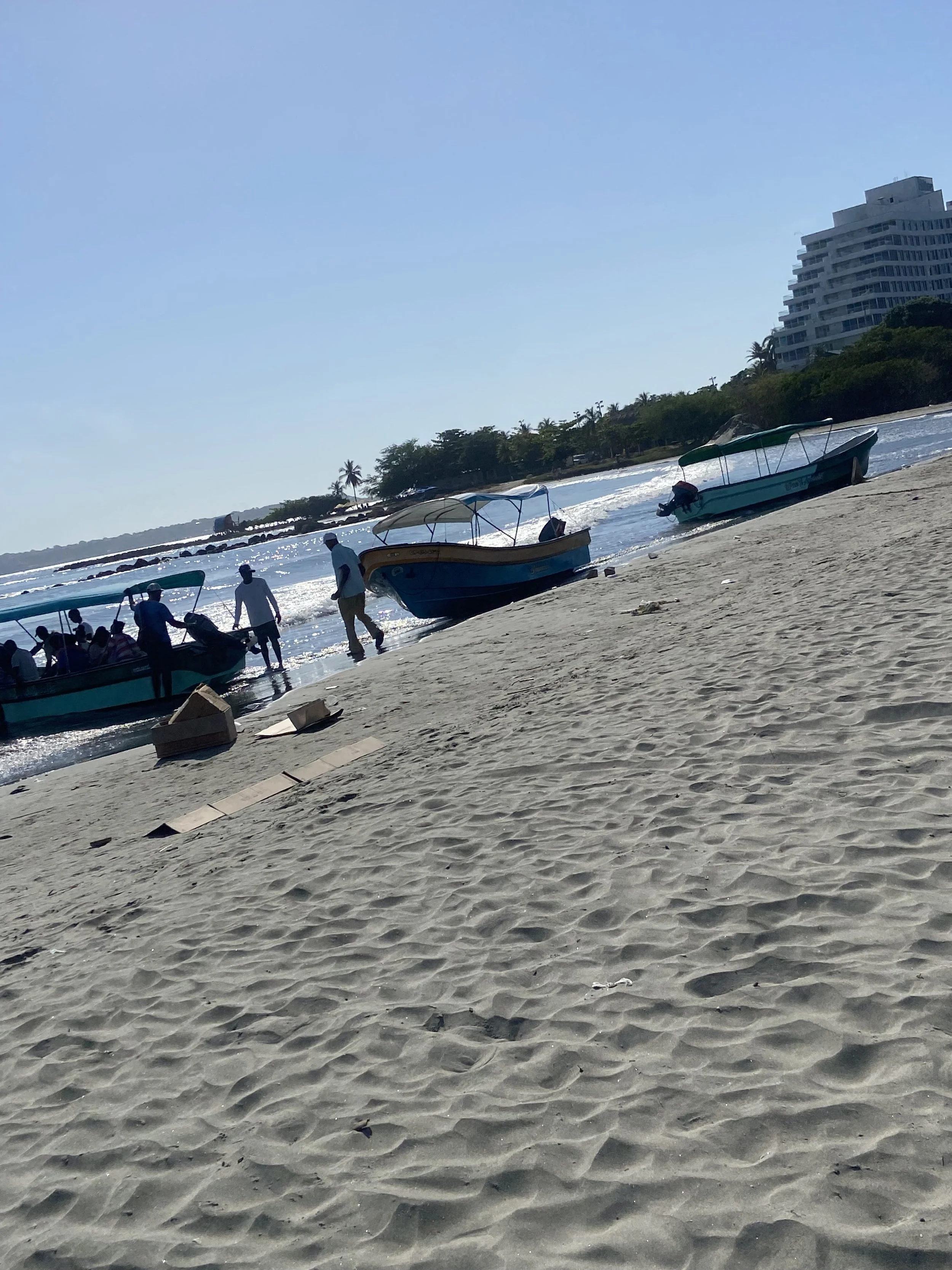 You meet at the beach behind the hospital in Bocagrande.