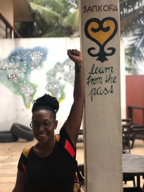 As I walked around the resort, I noticed adinkra symbols carved and painted on the walls and columns. Each symbol carried history and wisdom. My eyes stopped at one that made me pause: Sankofa. It is the same symbol I have tattooed on my body; my wrist to be exact. Its meaning is “Learn from the past and pull forward.” To see it there in Ghana, in the very land of its origin, felt like confirmation. It reminded me that this journey was not random. It was alignment.