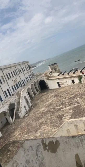 This was the most emotional day of the trip. We visited the Cape Coast Slave Castle, one of the most haunting and important historical sites in Ghana. Standing before the whitewashed walls of the castle, it was hard to reconcile its beauty with the horror that took place inside. The castle is massive, with courtyards, cells, and chambers that once held thousands of enslaved Africans before they were forced onto ships bound for the Americas.