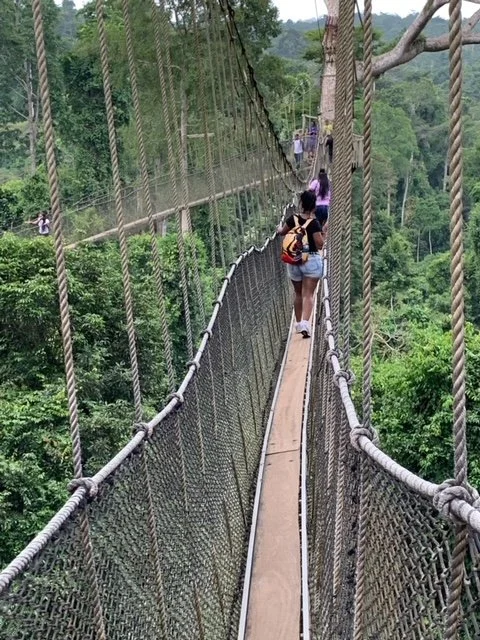 From there, the next adventure was Kakum National Park, one of Ghana’s natural treasures. We hiked through the forest, climbing steep paths to reach the canopy walkway. Once we arrived, the view was breathtaking. The bridges were narrow and swayed as we walked, suspended almost 150 feet above the ground attached to the trees. Looking down, all I could see was endless green stretching into the horizon. There were 7 bridges in total, that spanned over a quarter of a mile.